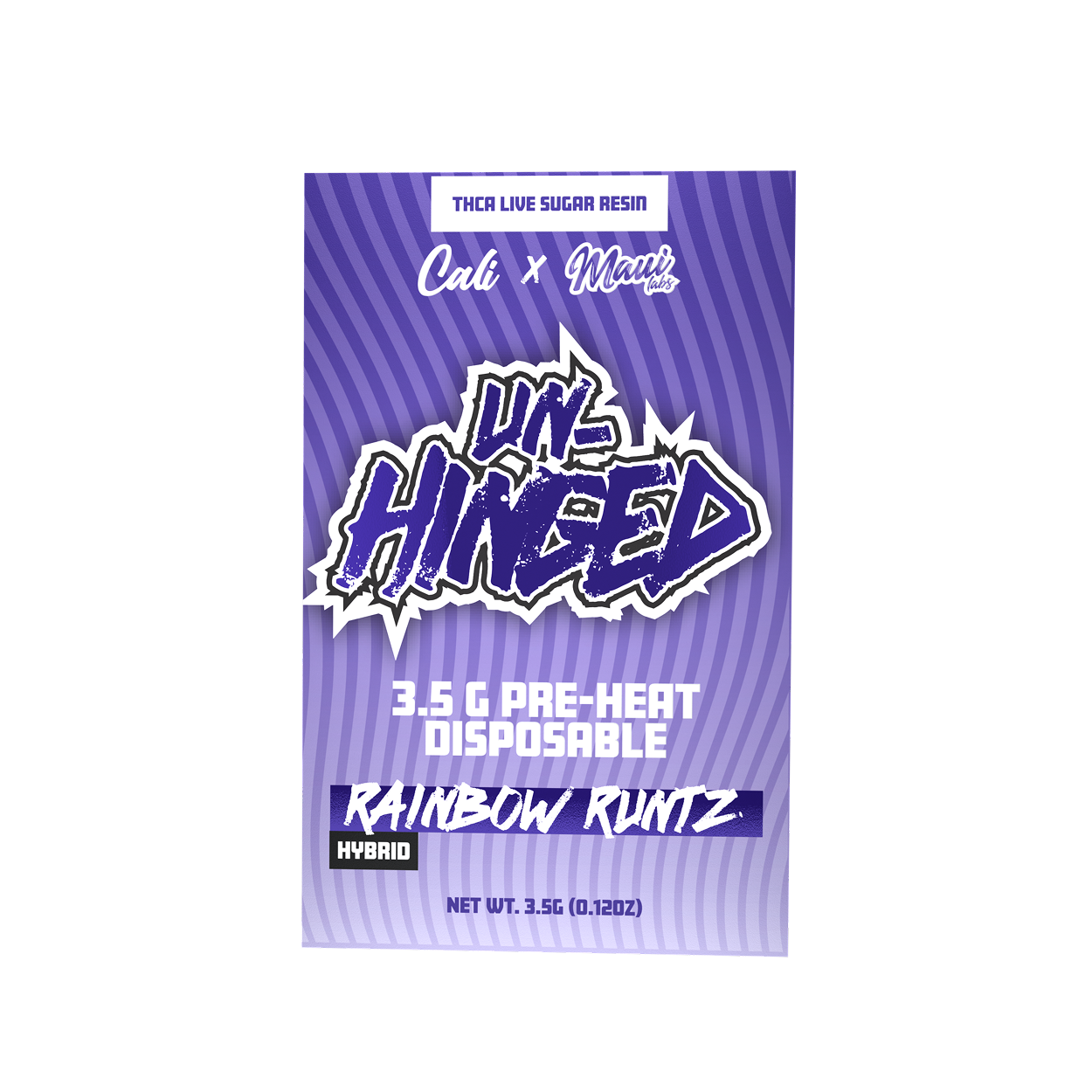 The Cali Vape Rainbow Runtz THCA Disposable 3.5 Gram – Unhinged is a premium disposable vape designed for convenience and potency. Pre-filled and ready-to-use, it eliminates the need for refilling, charging, or complicated setups. This device caters to users seeking a powerful, flavorful, and hassle-free vaping experience.